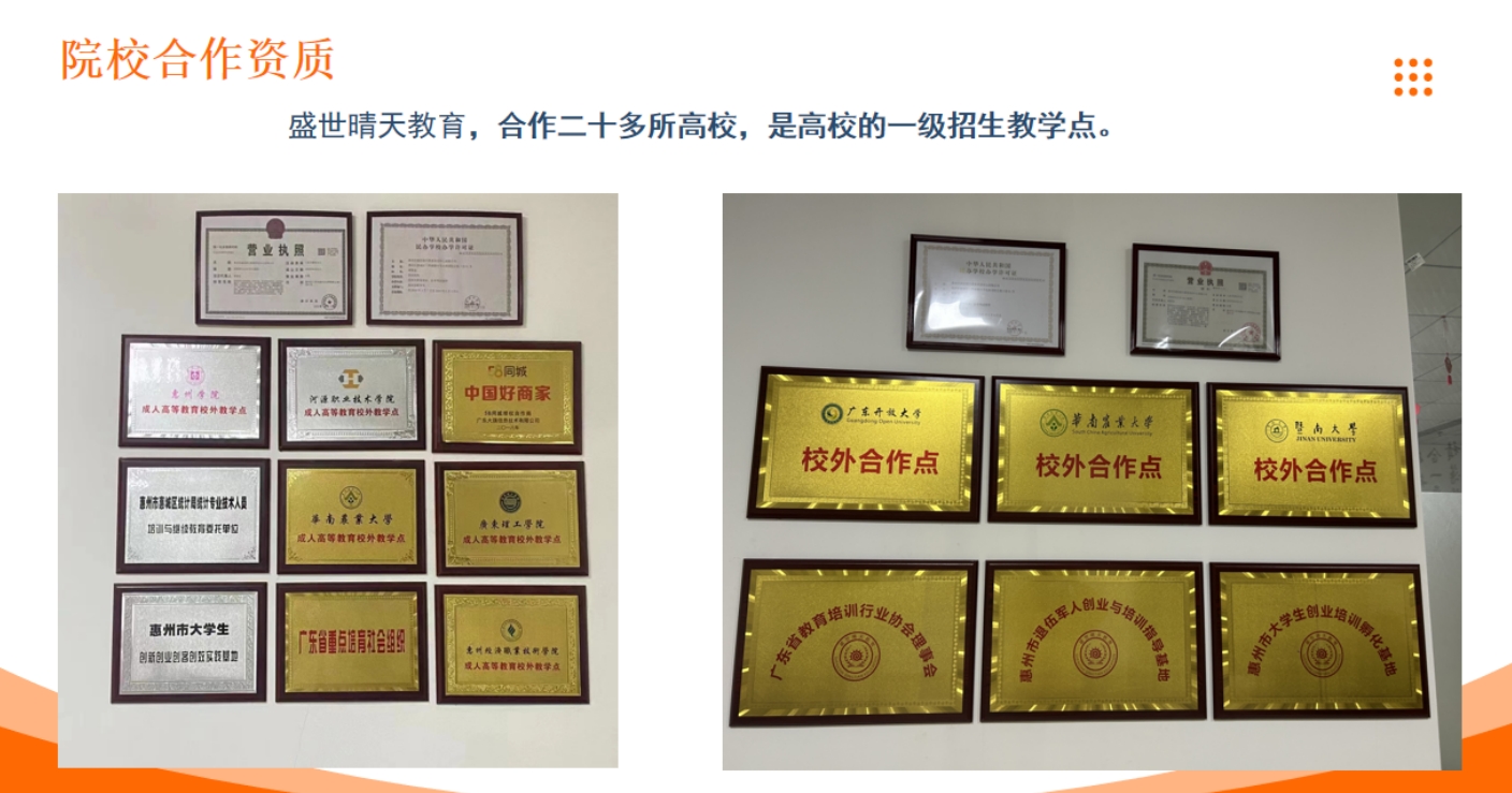 盛世晴天教育成立于2019年,經(jīng)市教育局主管部門批準準成立,專注于成人高等教育的培訓(xùn)機構(gòu)。用我們專業(yè)的服務(wù)幫務(wù)幫助更多人提升自己是我們的宗旨,故我機構(gòu)借助了現(xiàn)代教育手育手段、信息技術(shù)為學(xué)生提供更便捷的學(xué)習(xí)形式,多次受到市教育教育局及相關(guān)部門的表揚。